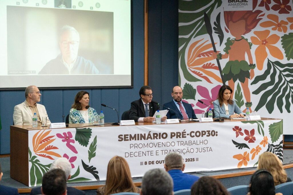 Nesta quarta-feira, dia 8, o Ministério do Trabalho e Emprego (MTE) e a Organização Internacional do Trabalho (OIT) realizam, em Brasília, o Seminário Pré-COP30: promovendo trabalho decente e transição justa. O evento reúne representantes do governo, setor empresarial, centrais sindicais e organismos internacionais para debater os desafios e oportunidades de uma economia de baixo carbono.